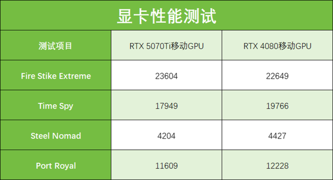 测试成绩显示,其DX11性能与前代RTX 4080基本持平,但在DX12和光追方面仍有一定差距。