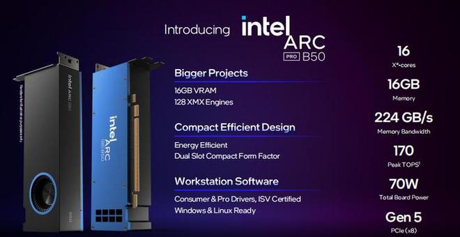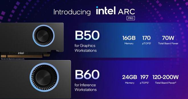 英特尔发布锐炫Pro B60/B50专业显卡:为AI推理与工作站优化