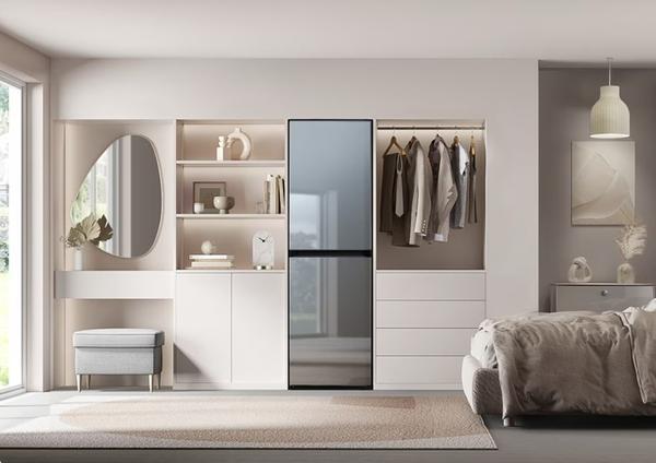 在日常生活中,家电不仅要满足功能性需求,还需融入家居环境,彰显主人品味。三星AI神 黑钻衣物护理机的设计充分体现了这一理念。其正面采用晶光镜设计,不仅是一台护理设备,更像一面优雅的全身镜,为家居增添时尚感。试想一下,早晨护理完衣物后直接对着镜子搭配,既高效又符合使用逻辑。