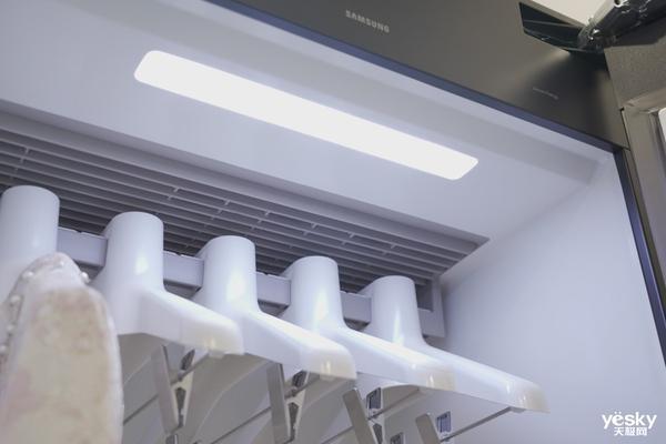 三星AI神 黑钻衣物护理机拥有超大容量,单次可护理5-9件衬衫(或同等厚度衣物),满足多口之家的日常需求。内部设计同样考究,白色主色调简约大方,上部配备出风口与照明灯,方便操作。